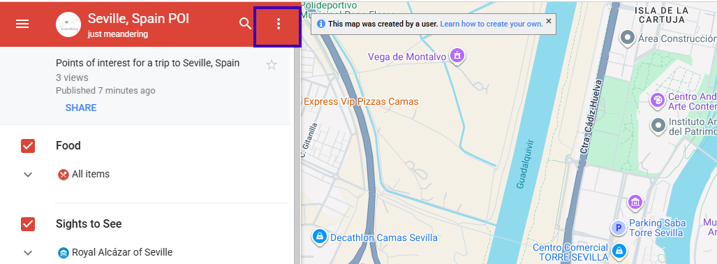Click on the three dots next to the title of the map. This is on the left banner on a desktop.