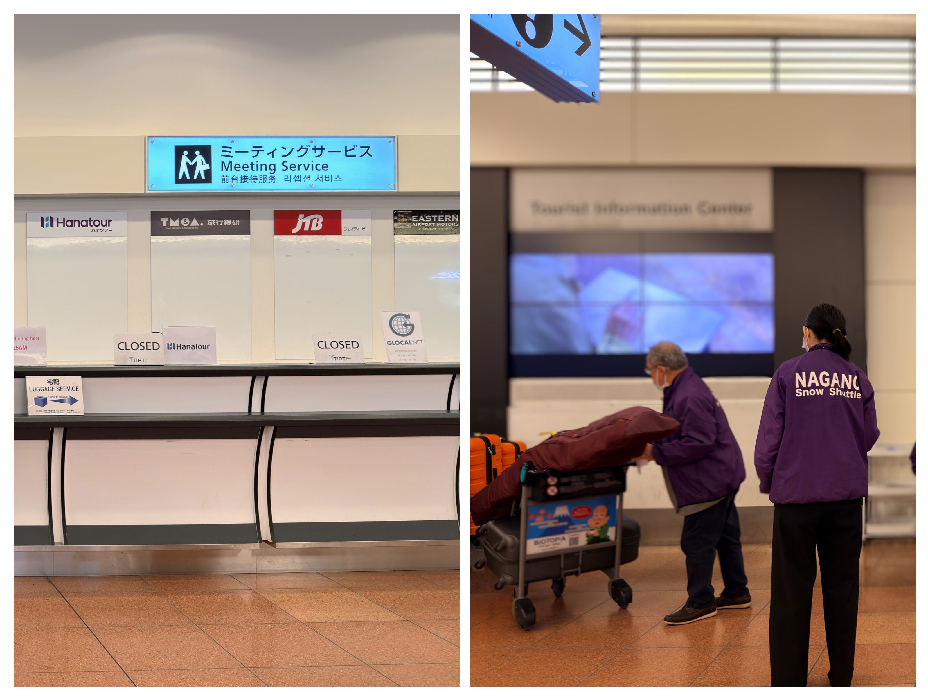 We checked in the minute it opened so that we could leave the snowboard and luggage with the staff. They told us to meet back 20 minutes before the bus leaves, giving us some time to buy snacks or relieve ourselves before boarding the bus. Once it was time, we assembled at the counter to take our tagged luggage back, and were escorted by the staff downstairs to the charter bus area.