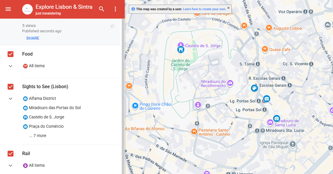 This post contains the interactive map I used while traveling through Lisbon, Portugal and Sintra, Portugal.