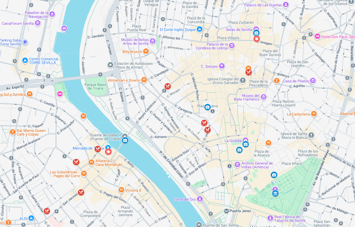 Link to my map here: Seville POI. If you want additional information, feel free to check out some of my other blog posts that will go through some of these locations in more detail: