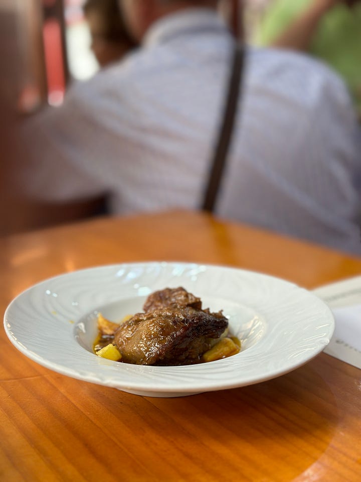 My favorite here was the chuletas de cordero lechal, a simply seasoned suckling lamb chop cooked to tender perfection. The runner-up was the carrilera iberica, which is a stewed Iberian pork cheek that melted in my mouth. Iberian pigs are a black pig that is native to the Iberian peninsula and are sometimes referred to as the “Wagyu of Pork”; therefore are a must-try in Spain.