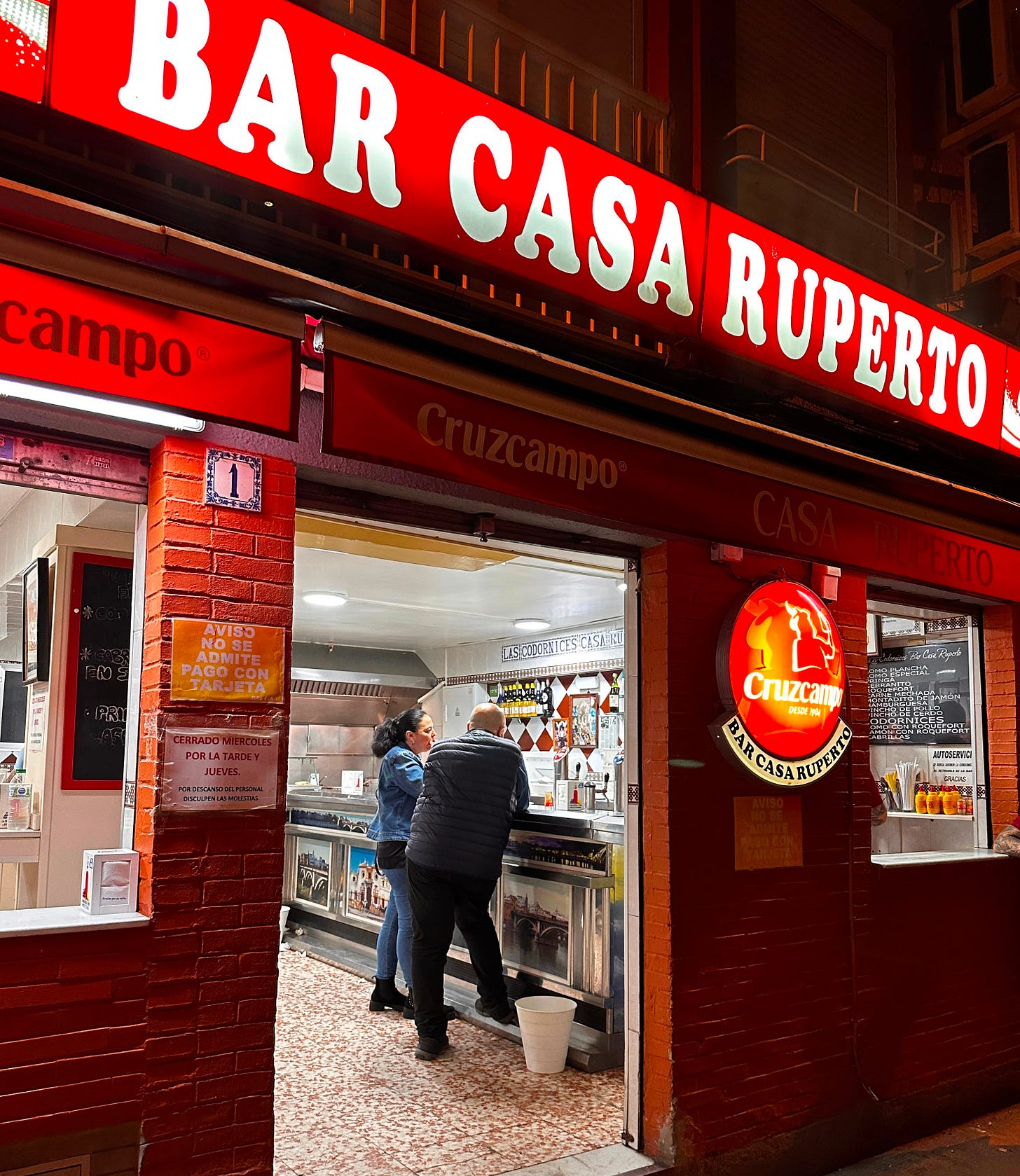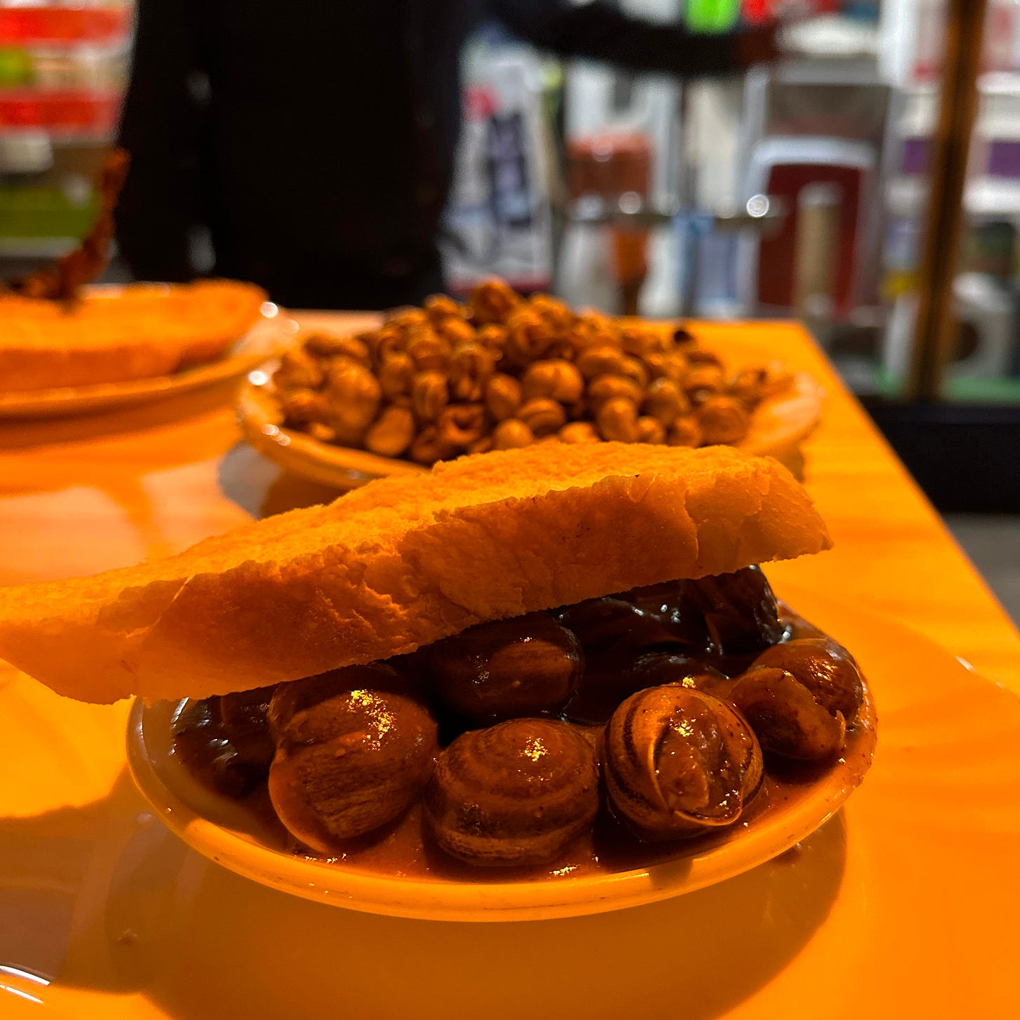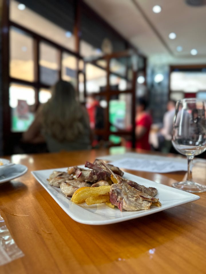 Bar Casa Ruperto is a no-frills, no-nonsense old-school bar. They write your bill on the chalkboard behind them, and you can cash out after you’ve had your fill of their delicious tapas. At Bar Casa Ruperto, we ordered caracoles snails cooked two ways and fried quail to start, and posted up at one of the standing tables outside. For our second round, we added the toasted Montadito con Jamón sandwich to our chalkboard tab just to have some carbs. Highly recommend the snails that come in the broth if they are in season here.